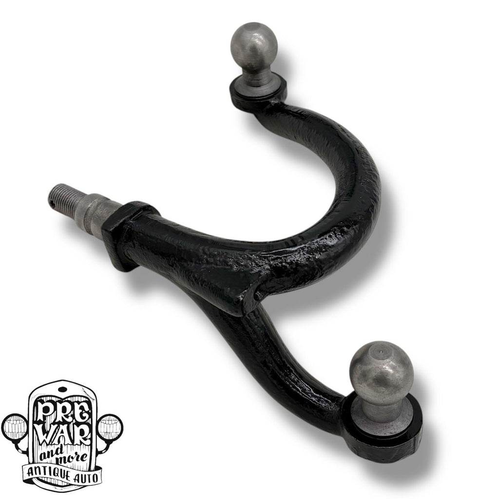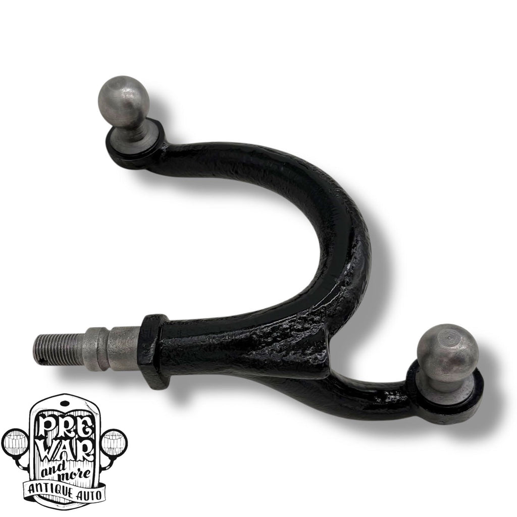 Original Ford Model A left hand steering arm. Fits 1928-1931 Ford Model A passenger car and pickup. Part has been sandblasted clean, inspected and painted in chassis black. Balls are in excellent condition with little to no wear.